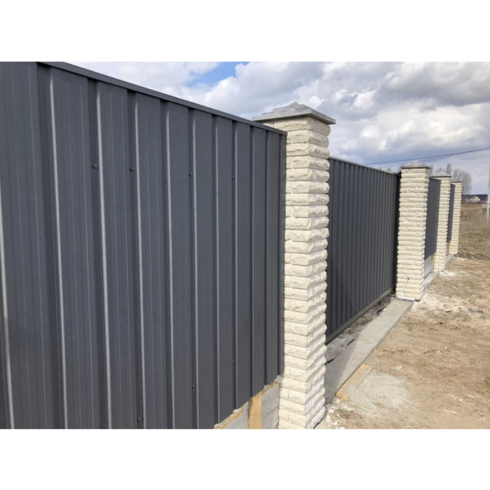 Профилированный лист С-8x1150-A (VikingMP E-20-7024-0,5) часто используется в Кировске для монтажа забора. Представляет собой металлический оцинкованный лист с покрытием. Общая толщина стальной основы с цинковым и декоративно-защитным слоем составляет 0.5 мм.Проходя процедуру холодного проката, сталь приобретает рисунок из повторяющихся волн. Такая конфигурация придает профилю жёсткость.