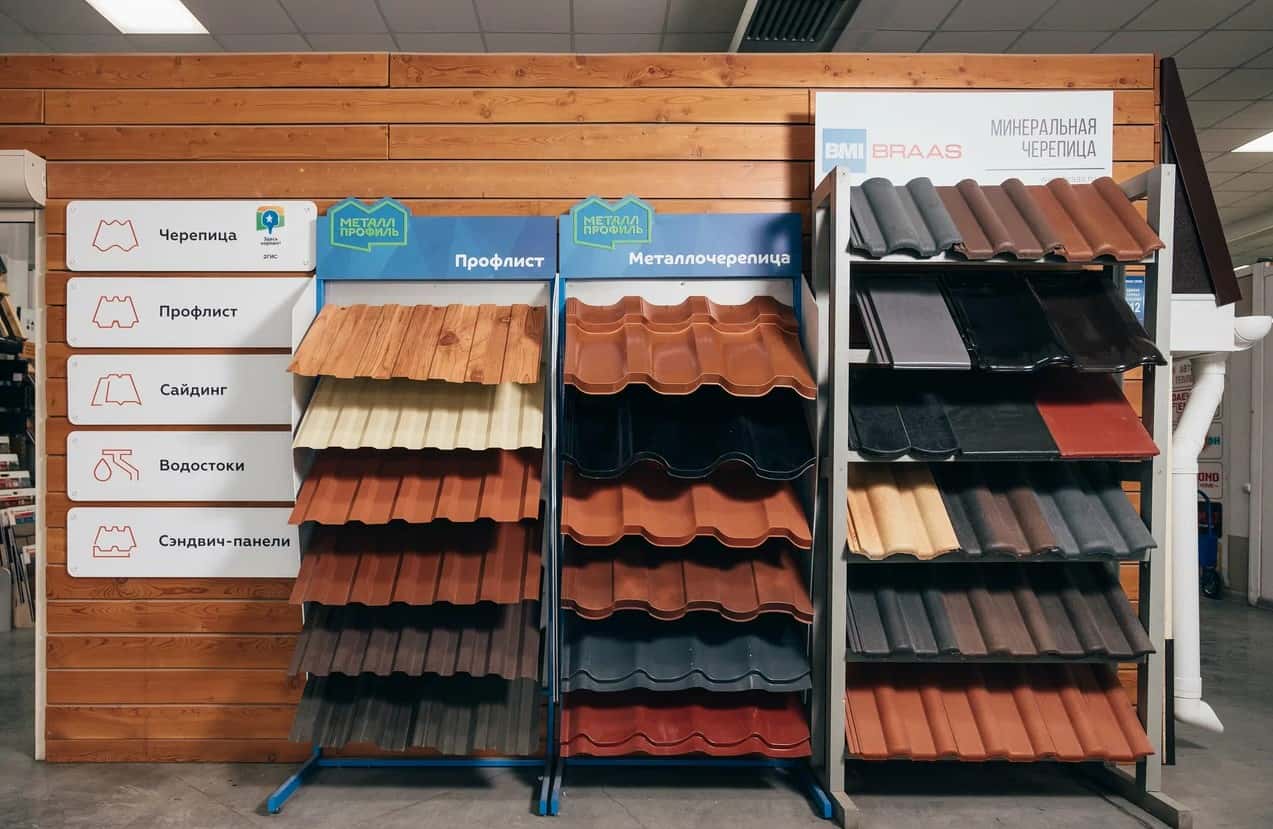 В современном разнообразии видов черепицы, а также различных брендов-производителей, бывает трудно определиться с выбором. Наша компания предлагает ознакомиться с широким ассортиментом кровельных материалов вживую! В нашем шоуруме представлена металлочерепица Grand Line и Металл Профиль, также Вы можете ознакомиться с популярными брендами мягкой кровли, керамической и цементно-песчаной черепицей. Отдельный стеллаж занимает профнастил различных профилей. Помимо основных материалов у нас большой выбор водосточных систем и доборных элемнтов по выгодным ценам.